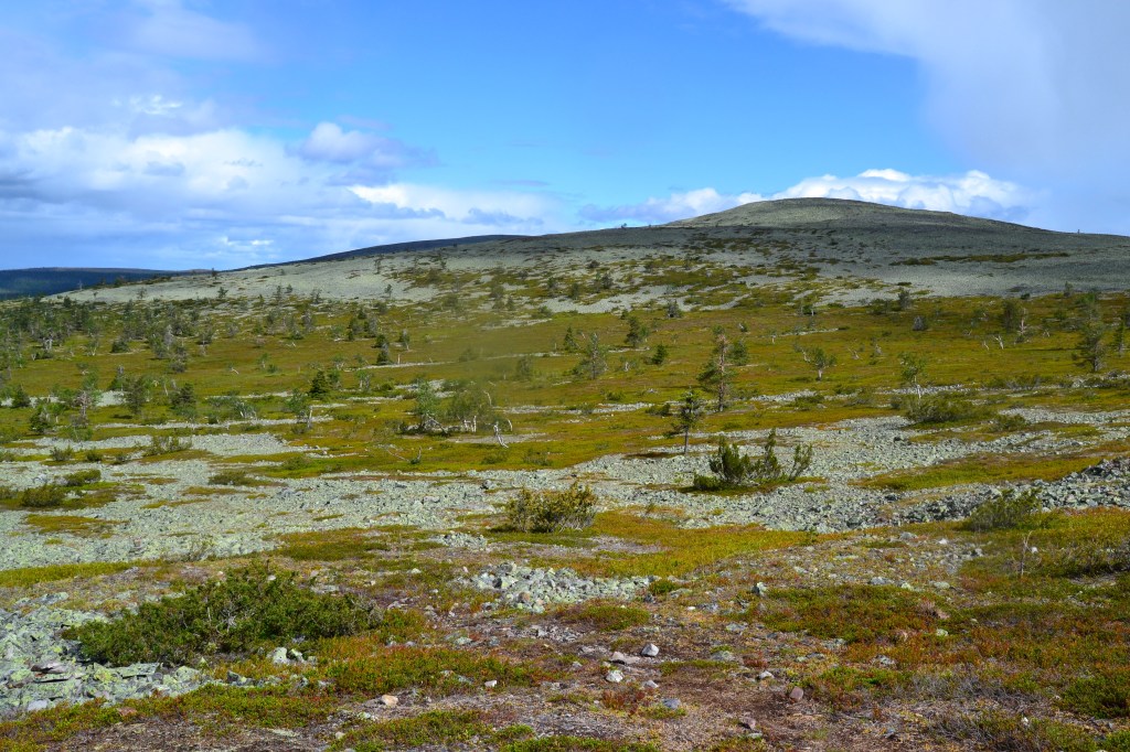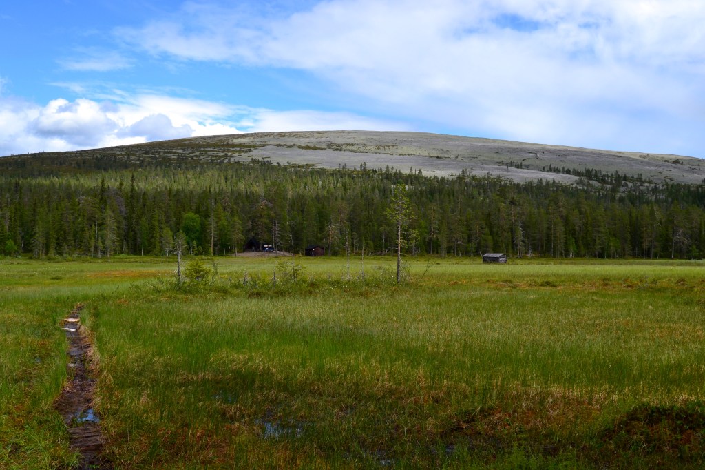 Reitti Saanan huipulle (1029m) on noin 4,5km pitkä ja polku suhteellisen helppokulkuinen (toki nousu vie aikaa vaikka jyrkkä nousu ei olekaan). Nautiskelimme maisemista, valokuvasimme ja herkuttelimme eväitämme vähän väliä niin meillä huiputukseen meni aikaa noin 3h. Kannoimme lisäksi kaikki vaelluskamamme selässä kun tarkoitus oli huiputuksen jälkeen vaeltaa Saanajärvelle ja pystyttää teltta Saanajärven päivätuvan läheisyyteen. Omassa rinkassani oli painoa arviolta 15-20kg sisältäen teltan, makuupussin ja -alustan, omat vaelluskamat ja 3hlö ruuat ja kokkausvälineet.