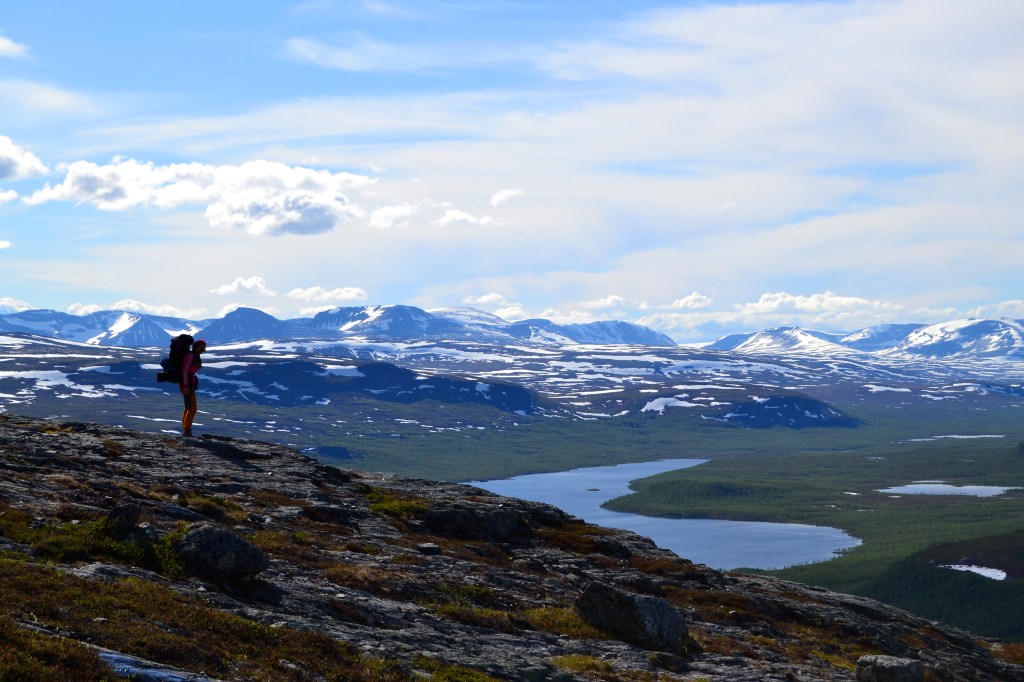 Reitti Saanan huipulle oli mahtava ja maisemat henkeäsalpaavan kauniit! Vaikka tuntureilla tuulee aina eikä ollut lämmin, saimme seuraksemme lähes pilvettömän taivaan ja kesäauringon. Metri metriltä maisemat varsinkin Norjan suuntaan muuttuivat yhä kauniimmaksi. Suomen puolen maisemat Saanan huipulta eivät olleet yhtään sen vähäisemmät, sillä näimme kilometreittäin erämaata ja tuntureita. Jäin huipulla miettimään sitä, että miksi Suomen tunturit ovat laakeita ja muutama kilometri Norjan puolelle vuoret ovat teräväkärkisiä lumihuippuja. Kuulemma ennen jääkausia myös Suomen vuoret ovat olleen Norjan vuorten kaltaisia, mutta meidän useat jääkaudet muovasivat huipuistamme laakeita.
