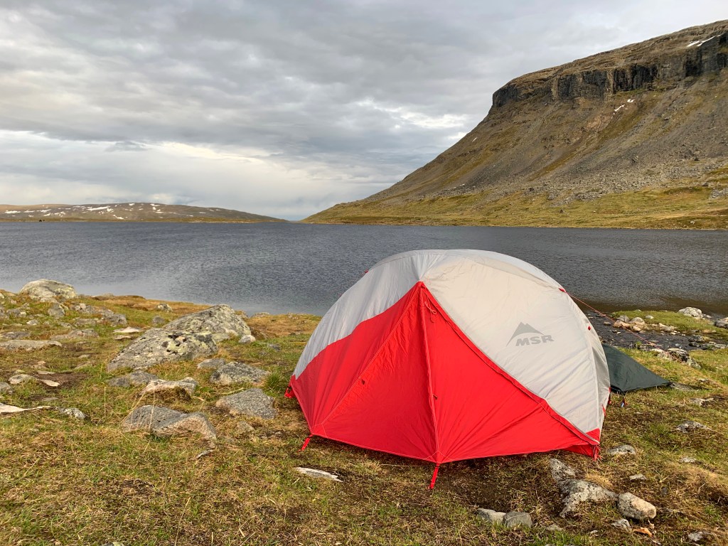 Aikaisemma blogikirjoituksessani kirjoitin varusteista ja tämä oli juurikin se hetki, milloin tajusin makuupussini olevan liian kylmä näille vaelluksille, sillä palelin koko yön ajan ja sain hädintuskin nukutuksi. Onneksi telttani on hyvä ja vettä pitävä niin emme sentään kastuneet yösateista. Toinen telttamme oli lainateltta ja teimme sen kanssa myös virheen emmekä tsekanneet etukäteen miten sen kasaaminen onnistuu. Saanajärvelle päästessämme tajusimme, ettei siellä ollut kenttää ollenkaan emmekä saaneet Googlattua tai katsottua Youtubesta kasaamisohjeita. Noin tunnin ärräpäiden jälkeen saimme kuin saimmekin teltan kasattua ja rauhoituttua yötä varten.