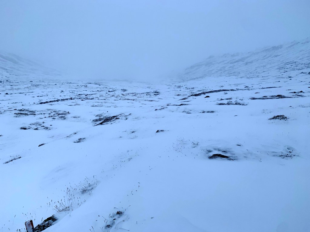 Jos aiemmin valitin rakkamaastosta niin Haltin huipulle vievä ”polku” se vasta rakkainen olikin ja poluksi sitä ei oikeastaan voinut edes kutsua. Matkaa Haltin tuvalta huipulle ja takaisin kertyi yhteensä noin 6,5km. Tehtiin taktinen veto kun keli ja maasto oli mitä oli niin oiottiin alkupätkä tuvalta omia reittejä ja päädyttiin vajaan tunnin sisällä oikealle polulle. Saatiin aika hyinen lumimyrsky samalle päivälle, mutta eihän se menoa estänyt vaan päädyttiin Haltin huipulle noin klo 11:40 15.10.2020. Noh eihän sieltä huipulta mitään nähnytkään, mutta jätettiin vieraskirjaan nimemme muiden tuhansien Halti-vaeltajien tyyliin ja poistuttiin takaisin kohti Haltin autiotupaa lounaalle.