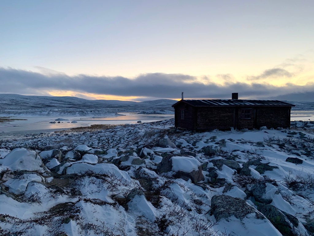 Viimeiset pari kilsaa oli puhdasta rakkamaastoa ja aika haastavakulkuista sellaista niin eteneminen oli hidasta. Lumipyry ja pimeys aiheutti myös sen, että hukattiin reittimerkit ja mentiin mun kellon gpsn kanssa vaan oikoen mutkia. Haltin tuvalle päädyttiin illansuussa ennen klo 21 ja tuvalla meitä odotti kaksi vaeltajaa ihanan Hilma-koiransa kanssa.