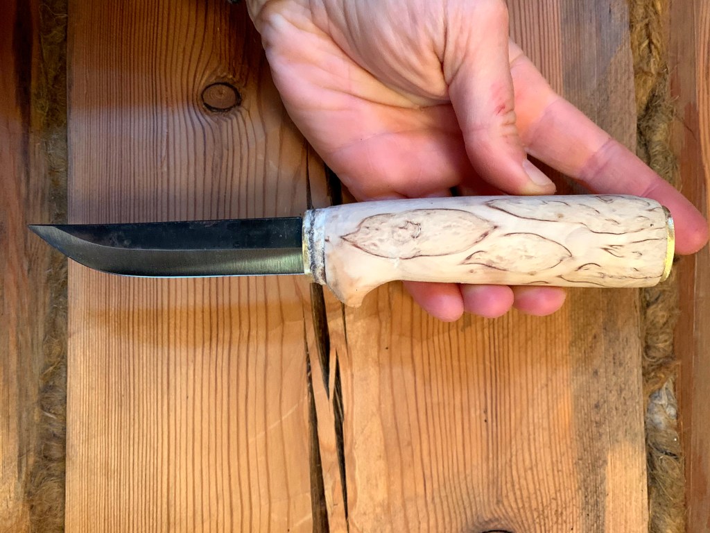 Syksyn yksi hienoimpia juttuja mitä en ehkä vuosi sitten olisi uskonut tekeväni oli metsästäjäntutkinto, joka meillä oli mahdollisuus suorittaa. Normaaliin metsästäjäntutkintoon kuuluu ainoastaan koe, mutta me saatiin lisäksi päivä ampumaradalla ja päästiin ampumaan hirvikiväärillä hirvi- ja karhutauluja ja haulikolla kiekkoja. Päivän päätteeksi oli tentti ja se meni niinkin hyvin läpi, että noin 90 kysymyksestä neljä taisi olla väärin. Ei muuta kun metsästäjäntutkinto kouraan ja ehkä joskus metsälle. Syksyllä päästiin hiomaan myös eräperinnetaitoja puukäsitöiden tiimoilta ja tein itselleni oman puukon (terä oli valmiina, mutta kaiversin kahvan, fiksasin puukon kasaan ja tein nahkasta puukolle tupen).