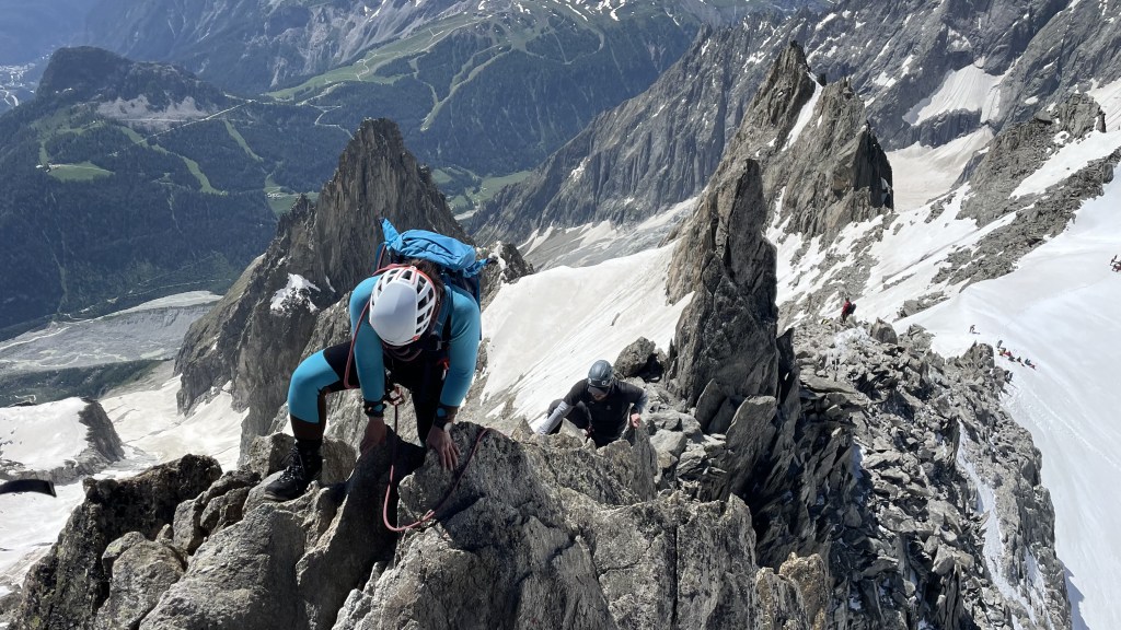 Nyt on lennot taas buukattu Alpeille kesäksi ja tarkoitus on mennä kiipeämään vastaavanlaisia harjanteita vuorten lisäksi. Niiden kiipeilyllisyys on se mikä houkuttelee. Myös nämä harjanteet esim. Alpeilla on usein todella ilmavia ja niissä on oma jännityksensä kiivettäessä. Olet jo ylipäätään vaikkapa 3500m korkeudessa ja silti harjanteelta jäätikölle on useiden satojen metrien matka alas.